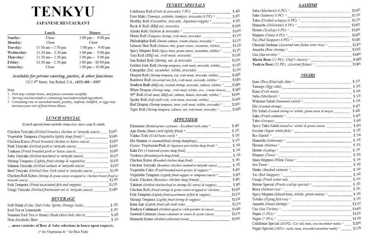 - Japanese Noodle Soup: A variety of udon dishes are available, including Wakame Udon with seaweed, Vegetable Udon with tempura, Beef Udon, Chicken Udon, as well as specialty options like Tenkyu Udon and Nabe Yaki Udon.